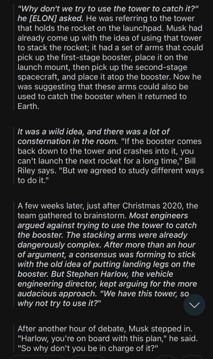 Joda, det er en viktig nok egenskap det, men Musk er en aktiv pådriver for endringer, effektiviseringer, og nye idéer. Tidsaktuelt utdrag fra biografien hans: Så han gjør begge deler, og gir likevel ingeniørene plass til å jobbe med detaljene.- 209 svar