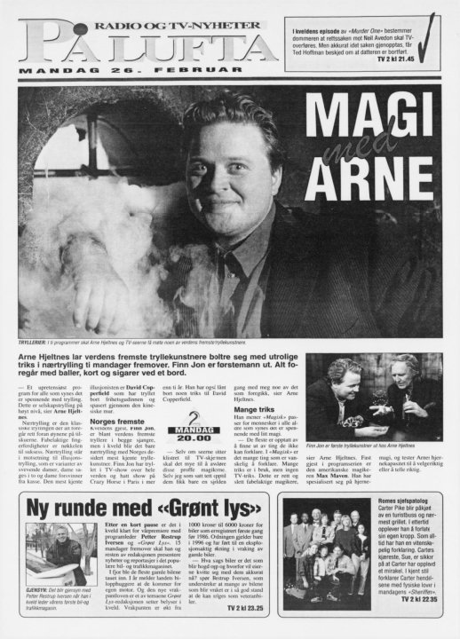 Problemet ditt er at informasjonen du søker ikke fantes på internett, men i papiraviser. For eksempel side 44 av Arbeiderbladet fra 26. februar 1996: "Magi med Arne" https://www.nb.no/items/URN:NBN:no-nb_digavis_arbeiderbladet_null_null_19960226_112_48_1?page=44 Og programmet het "Magisk" på godt norsk, ikke Magic. Finner ingen spor av det i tv-databaser eller annet. Er nok for gammelt og for lite - ett eller annet obskurt produksjonsselskap eller annen del av produksjonen sitter på rettighetene, eller de lisensierte inn musikk og annet på en måte som er helt umulig (ekstremt kostbart) å benytte i streaming-format i dag, så det ser nok aldri dagens lys igjen i offisiell sammenheng.