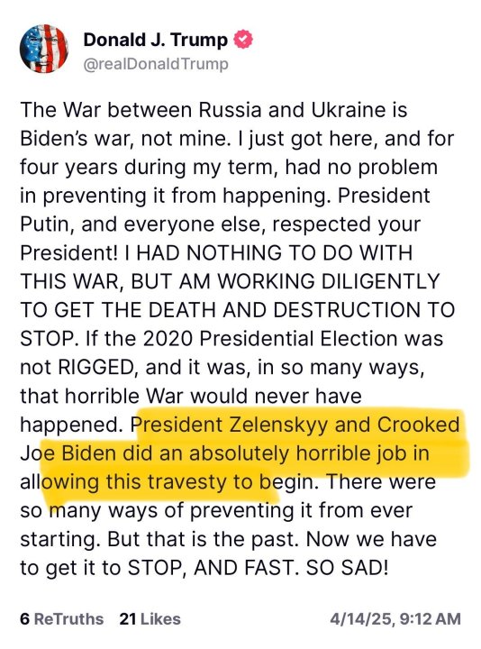 Leste en god forenkling av Ukrainas situasjon i dag. Den gikk omtrent slik: «En kriminell bryter seg inn i huset ditt. Vedkommende voldtar hele familien din og dreper bikkja før politiet kommer. Politiet tvinger deg til å akseptere at forbryteren får bli værende i huset og overta badet, kjøkkenet og det ene soverommet. Og på vei ut døren, tar politiet med seg alt du har av mat i huset.» Det er dette noen forsøker å kalle «forhandlinger» …- 84 040 svar