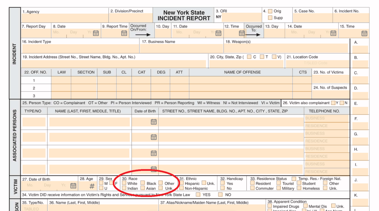 Fair poeng, men nå er det altså ikke jeg som valgte ut de rasene i diagrammet ditt og tabellen til Red Frostraven. Det gjorde forskerne. Hvis du syns de har dårlig metode, må du nesten ta det opp med dem. Med et navn som @James G kanskje du er fra USA? Her er et Incident Report-skjema fra New York. Det er en egen bolk for Race der. Tar hele New York State feil? Selvfølgelig ikke. Race - rase på norsk - er helt legitimt og greit å bruke. Utsagn som "Det finnes ikke menneskeraser" og "Alle født i Norge er etnisk norske" henger ikke på greip, og er en beskrivelse av hvordan verden bør være, ikke hvordan den er. Det er ønsketenkning og agendastyrt av politisk korrekte folk. -