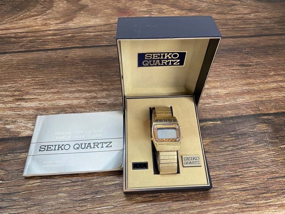 Kjøpte nylig Seiko LCD Word timer fra -79 i mint condition med original boks og instruksjonsbok. Den er hos en urmaker med mye spes utstyr. Den er nok tatt batteri ut av, mørkt som f.. Men de fikk ikke opp baklokket, satt som stein. Måtte legge den igjen. Håper for all del ikke dette skjærer seg. For denne klokka var kul synes jeg. I gull double som ny, skikkelig pornoklokke.
