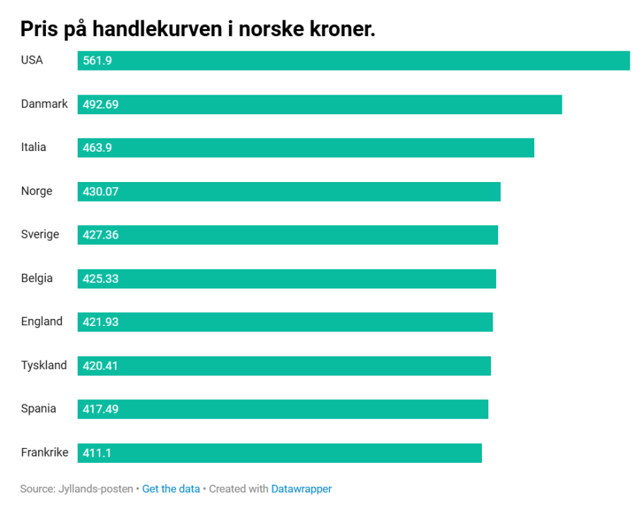 https://www.nationen.no/billigere-mat-i-norge-enn-i-usa-og-danmark/s/5-148-790663 I land som sveits og island så er prisene minst 50% høyere enn i norge. Grunnen til at vi opplever mat som dyrt, er rett og slett at vi har blitt fattigere relativt til andre land. Dårlig styring av landet har ført til svak kronekurs og lav produktivitetsutvikling. På Cuba er matprisene langt lavere enn her, men for lokalbefolkningen oppleves de likevel som svært høye. Det samme skjer i Norge. Det er virkelig trist at så mange lar seg villede av de notoriske løgnerne som styrer landet.