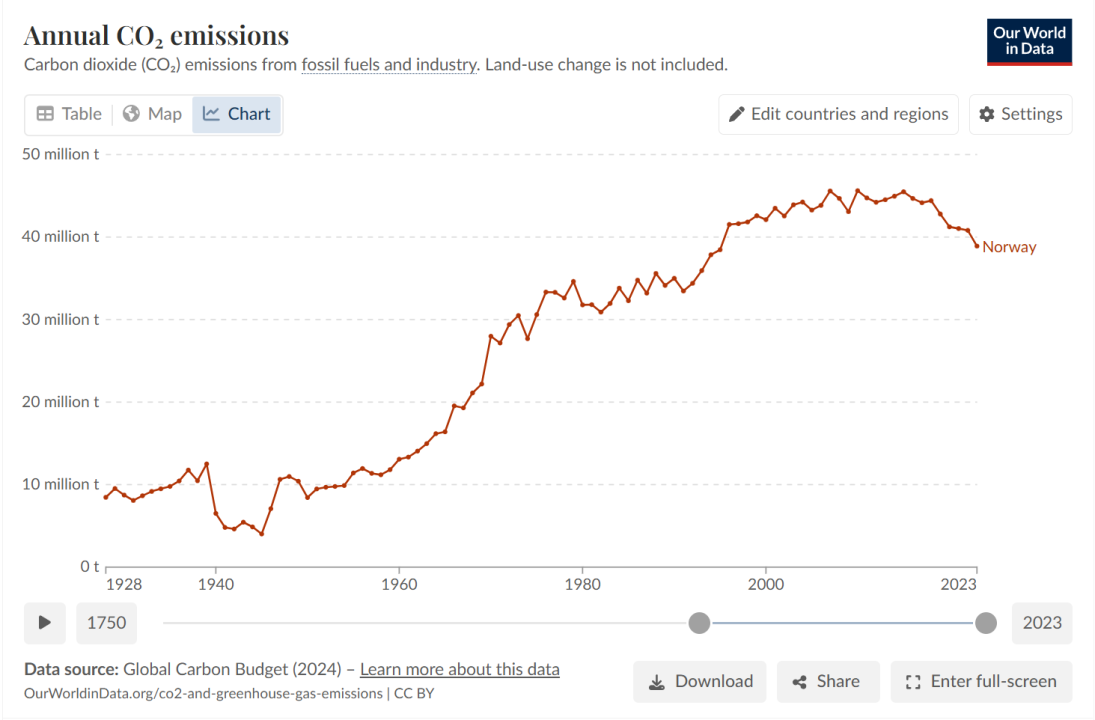 Med tanke på at mye av utslippene i EU blir forflyttet til norge gjennom ordninger som opprinnelsesgarantien m.m., og vi har hatt en befolkningsvekst på 800 000 gjennom masseinnvandring så er det jo ganske imponerende at vi har kuttet så mye siden 2010. Men det gjenspeiler vel den svekkede kjøpekraften og levestandarden. I motsetning til alle andre land så tar vi heller ikke med skogen i regnskapet- 211 svar