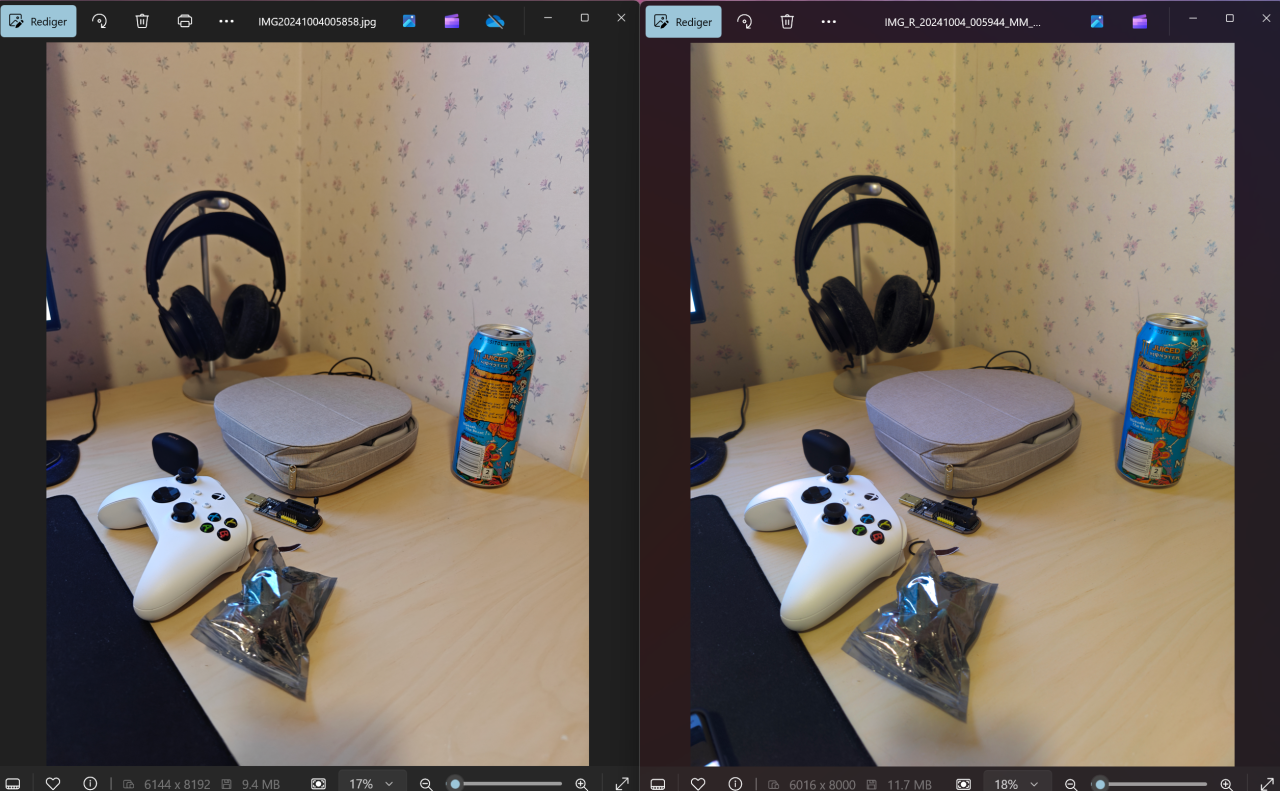 OP9 pro med OnePlus 9 Series Camera Unlocker og GCam tar sinnssykt bra bilder. Find x7u til venstre og oneplus 9 pro til høyre, begge tatt i respektive 50mpx og 48mpx. Viser bare hvor dårlig optimalisert de kommer stock, umodifisert op9pro tar i utgangspunktet helt ræva bilder sammenlignet med x7u.
