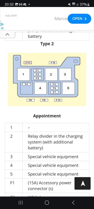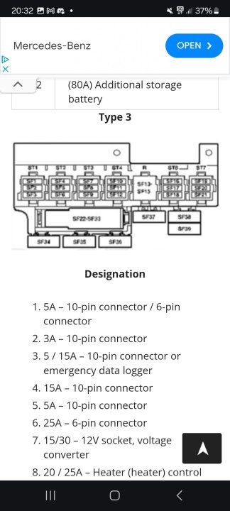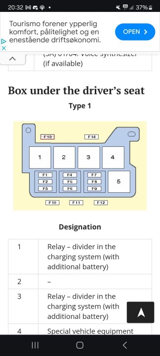 Hei flinke bilfolk Skulle gjerne funnet ut hvilken sikring som hører til Webastoen i min caravelle t5. Den har nok en gang gått i lås, og jeg skulle helst sluppet å reise til verksted for å få låst opp hver gang. Den kan visstnok resettes ved hjelp av sikringen i følge webasto thermo top c manual, men jeg klarer ikke finne ut hvilken sikring jeg skal ta. I manualen står det bare at sikring F1 skal være 15A, men det er jo 5 stk 15A under der. Har spisset meg inn på at det er en av sikringene som ligger under førersetet, men jeg finner ingen kart over hva hver enkelt sikring går til. Har googlet og lest masse på forum, men finner ikke noen sikringskart som stemmer overens med slik min ser ut. Det er veldig trangt og kronglete å komme til under der, så bildene er ikke de beste. Finnes det eventuelt en billig feilkodeleser som fungerer til å låse opp igjen?