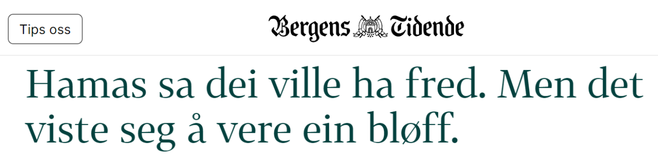 Godt å se at norsk media har ryddet plass til et mer balansert innlegg. https://www.bt.no/btmeninger/kommentar/i/mP6qbv/gaza-krigen-hamas-sa-ja-til-vaapenhvile-men-det-var-en-bloeff
