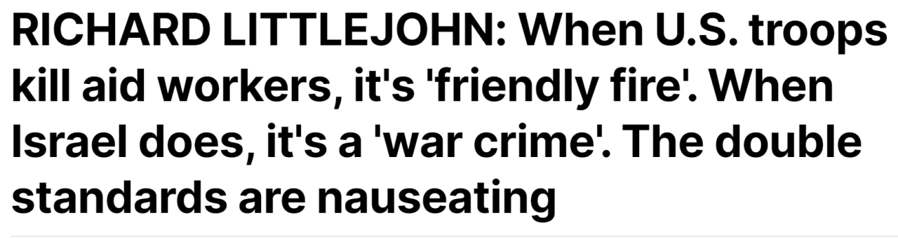 16. This event stands in sharp contrast to the 2005 Haditha tragedy in which a group of United States marines shot and killed 24 Iraqi unarmed men, women and children multiple times at close range. Victims included both elderly people and a 1 year old child. The U.S. military initially lied about what had happened. After pressure to do a further investigation, the investigation report concluded that evidence “supports accusations that U.S. marines deliberately shot civilians.” The tragic accident in Gaza involving the WCK heroes is devastating, but the world needs to stop holding Israel to a completely different standard than what is applied to the rest of the world.