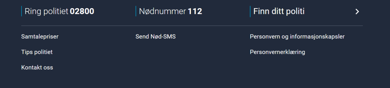 Fant dette bildet på politets hjemmeside: Spørsmålet da er, skal en kreve samtalepriser for samtale med politiet? I så fall, hvor mye bør ting koste? Skal en gi forstyrrelse-gebyr for samtaler som forstyrrer samtale-strøm, og hvem burde avgjøre dette? Hvor nyttig må samtalen være, og hva slags innhold må samtalen ha, for at en skal få redusert pris eller kanskje få gratis samtale?