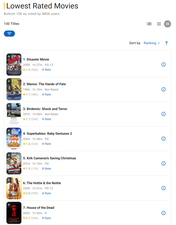 Snøhvit skulle nå vært på topp 10 dårligste filmer i historien hos IMDB. Kanskje på 1. plass. Men IMDB har fjernet filmen fra bunnlisten. 😂 Det er flere på nett som bekrefter dette. For ett døgn siden skrev f.eks noen på Reddit en tråd med følgende overskrift: Snow White has been removed from IMDb’s Bottom 100 list. Der kan vi lese følgende: "I think Snow White would have comfortably ranked in the top 10 lowest-rated movies among these atrocities, but it was removed as soon as it reached the 11th spot." Vedkommende legger også ved bilde med score på 1,9@ 74k stemmer. Scoren nå som er på 1,7@ 120k stemmer er jo betydelig mye dårligere enn da. Jeg regner med filmen skulle vært på toppen av bunnlisten dersom IMDB ikke hadde vernet den fra å komme inn på topp 10. Men vet ikke helt hvordan algoritmen fungerer, så skal ikke si noe helt sikkert. For de nysgjerrige, bunnlisten ser slik ut: Nåværende rating for Snøhvit: