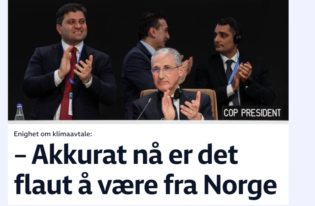 9. Ser NRK er ute og skriver en ganske så vinklet sak : Jeg må si jeg ble overrasket over denne ekstreme negative vinklingen. Er det noe som har preget nyhetsbildet det sistet året så må det vel være alle pengene Norge har gitt bort til andre land. For meg fremstår denne NRK vinklingen som å skyte seg selv i hodet,overleve og så klage på patronene...... Det er jo ikke rart FRP får ekstreme vind i seilene om nyhetsbildet skal preges av journalister som sutrer over at man ikke klarer å sende ennå mer penger ut av landet https://www.nrk.no/urix/flere-fattige-land-forlot-forhandlingene-pa-klimatoppmotet-1.17139536