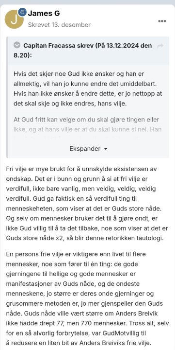 James G svarte på Kjell Sande sitt emne i Religion, filosofi og livssyn