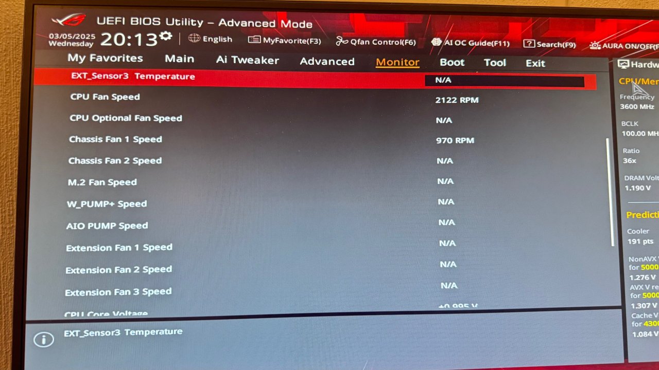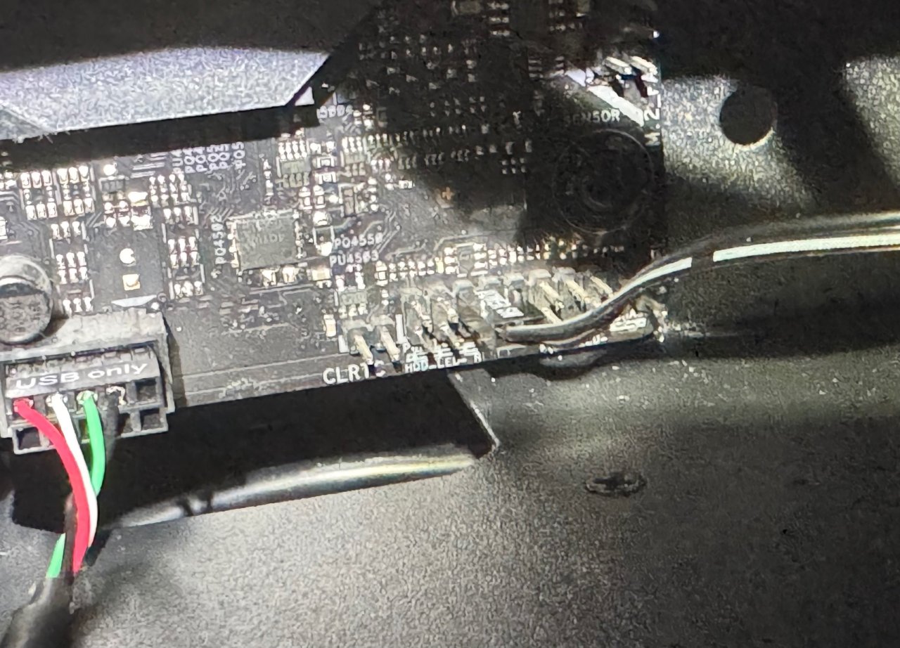 Når jeg starta opp på nytt litt senere kom det en rar lyd. En kabel kom borti vifta til 3080 kortet. Etter å ha Fixa det så satte jeg Gpu i det øverste pci sporet på hk.