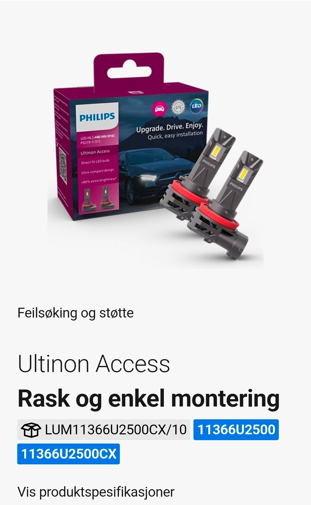 De hadde forsåvidt hverken korrekt pære eller en oppføring i listen for min bil, så da får jeg jakte på gode halogenpærer.