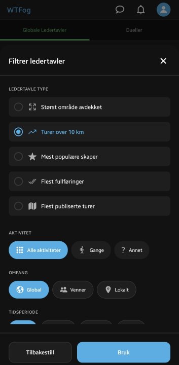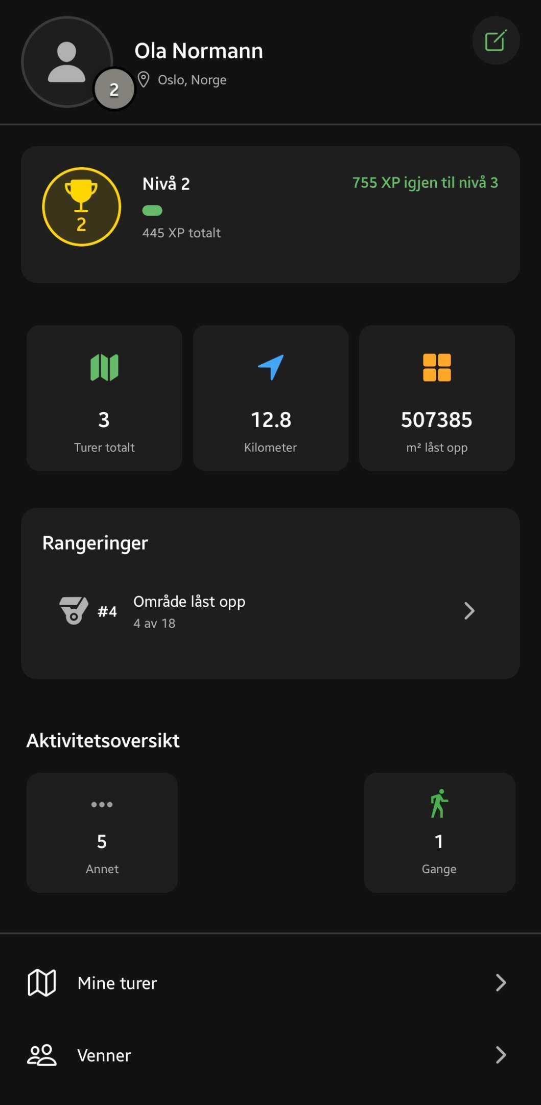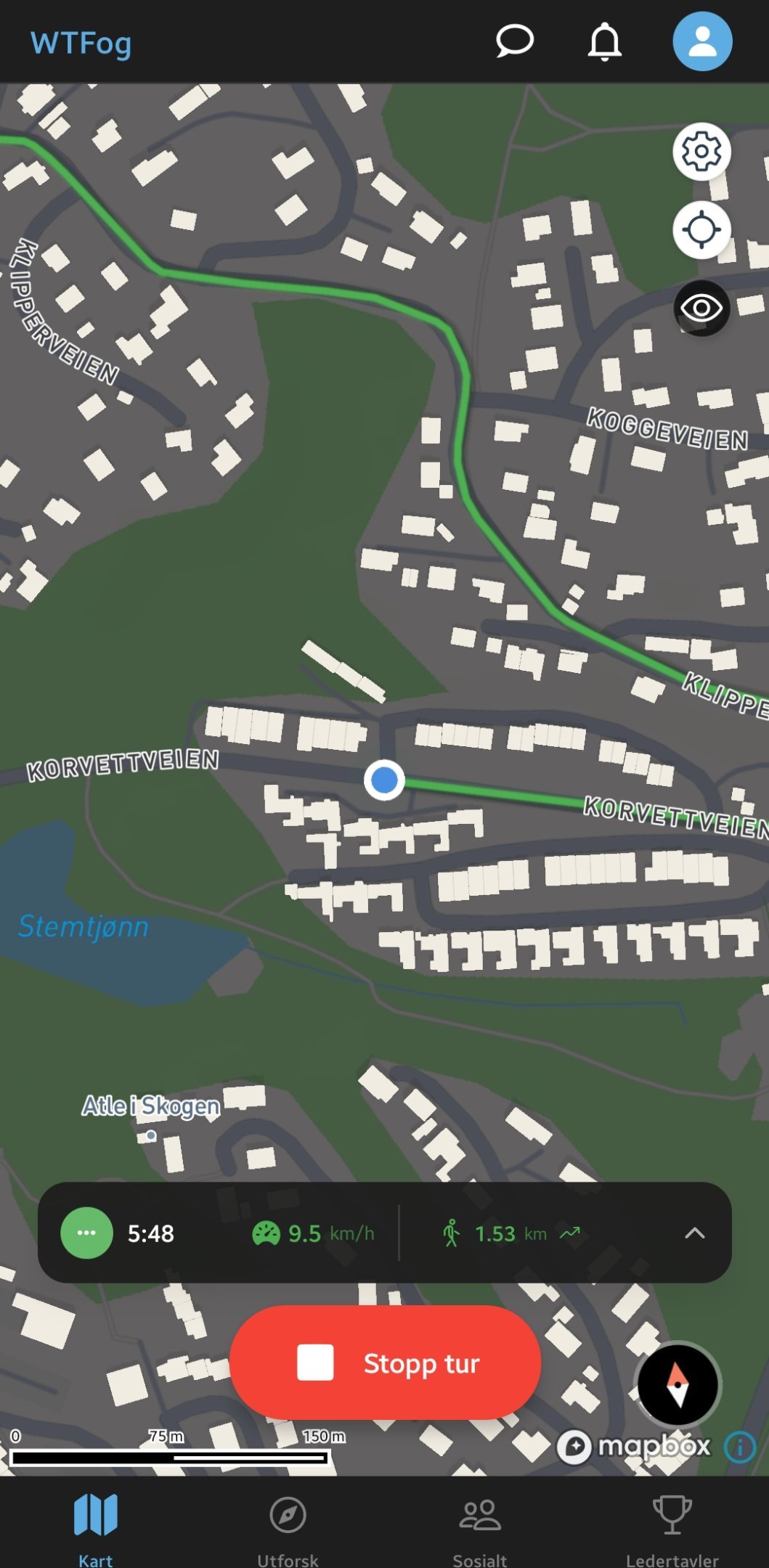 1. Hei! Jeg har de siste månedene jobbet med en app som endelig begynner å ta litt form. Det er fortsatt et godt stykke igjen, men jeg tenker å åpne for lukket testing i løpet av noen dager. Søker i den forbindelse noen folk som kunne tenke seg å teste den i et par uker, og som kan gi relevant tilbakemelding. Appen har jeg kalt WTFog, og idèen er at verden er dekket av tåke som man fjerner ved å bevege seg rundt. Tåken rundt deg i ca 15 meter radius fjernes også. Hvis man omringer områder under 0.01km2 så fjernes tåken inni også. Ledertavler holder styr på hvem som har fjernet mest tåke, har flest turer over 10 km, flest fullføringer osv. Tavlene sorteres etter globalt, lokalt, og blant vennelisten din. Det kan også sorteres på aktivitet, som gange, sykling, løping. Hver aktivitet har en satt fartsgrense for å begrense juks. Etter man har registrert en tur så kan man publisere den, og det er ledertavler på raskest tid og flest fullføringer på hver tur. Disse kan også sorteres på aktivitet. Fullfører du en publisert tur får du XP, når brukere fullfører en tur du har publisert får du XP. Fjerning av tåke gir også XP, og du øker etter hvert i nivå som vises på din profil og ved siden av profilbildet på ledertavler og i grupper etc. Hvis du ønsker å teste appen - og ikke blir lei deg hvis du mister opptjent fremgang - send meg en melding med en gmail-adresse. På forhånd takk! Mvh Gunnar Fjellestad