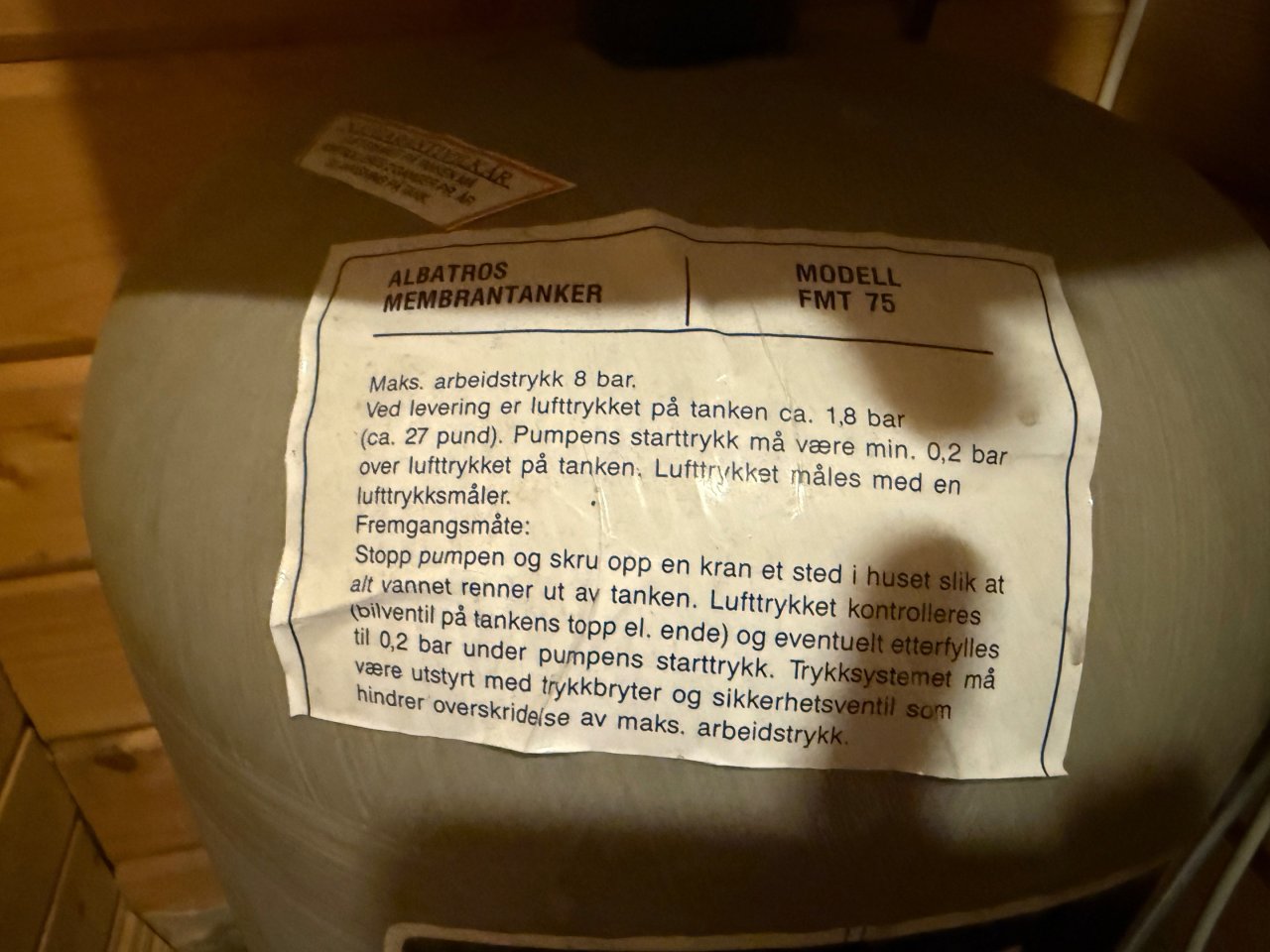 Jeg har omtrent samme pumpe/blære og trykket ligger mellom 2 og 4 hos meg hele tiden. Har aldri gjort noe med dette siden det ble installert for 16 år siden og tenker ikke å tukle med det om det ikke trengs Fremgangsmåte er beskrevet slik på min modell: