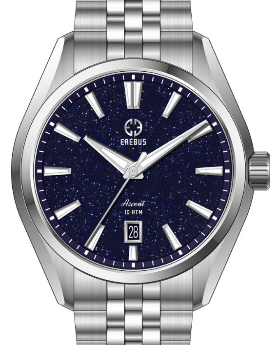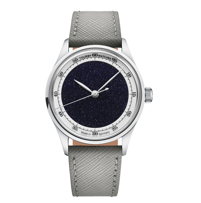 Oppdatering : Har funnet noen klokker som tar aventurinens stjernehimmelutseende noen hakk videre, ved å tilføye stjernekonstellasjoner (lume) på skiven. Men det er definitivt to ulike kompleksitetsnivåer på disse. I likhet med Zelos (nevnt ovenfor) er Boldr lokalisert i Singapore. Godt kjent for rimelige militæraktige felt-klokker i titan. De kom i sommer (et samarbeid med WatchGecko, virker det som) med Boldr Venture Polaris: Versjon Moonstone er sandblåst titan grade 2, mens versjon Blackout har fått et svart PVD-lag oppå titan. 200 m vannresistens, safirglass, Seiko NH38 urverk, diameter 38mm, høyde 44mm, tykkelse 12 mm, rembredde 20 mm. Pris er 399, enten man snakker US$, € eller £... Ser ut som det er mulig å få den til Norge med MVA betalt for ca NOK 4 500,- fra en europeisk nettbutikk som fjerner EU-MVA når de sender hit. Jeg liker utseendet, setter pris på klokker som som kombinerer enkelhet med særhet Ingen timemarkører, man må finne kl 3 i Kassiopeia og kl 9 i Karlsvogna og ta det derfra. Passer nok ikke helt 100% som dressklokke (stuttkjukk), i hvert fall ikke i snobbefint selskap - men til en konsert, forestilling eller sammenkomst kan den passe ypperlig, mener jeg Den neste er mer komplisert, og med større risiko siden den er et Kickstarter-prosjekt. ChronoAstra er et tysk varemerke jeg ikke aner noe om. Men klokken er interessant! Den har noen grunnleggende likheter med Boldr - titan-kasse (men grade 5 i stedet for 2), aventurin som (mulig) urskivemateriale, og stjernekonstellasjoner tegnet med lume på urskiven: Stjernekonstellasjonen tegnes utfra at bestiller oppgir et sted og et tidspunkt, og så skal konstellasjonene stemme med hvordan himmelen var der og da. Fiffig! Den har faktisk timemarkører, uten lume. Urkassen kan fås børstet/polert eller med svart DLC. Vannresistensen er 50m. Velg heller Boldr om du skal bade Safirglass, Miyota automat eller Rhonda kvarts urverk, diameter 34 eller 40mm, høyde ??mm, tykkelse 8,5 eller 9,95 mm, rem/lenke integrert (standardremmer kan neppe benyttes uten videre). Pris for de få gjenværende automatklokkene er €699 (+++, vil jeg tro) og dette hevdes å være 42% rabattert fra det som vil bli utsagspris etter Kickstarter-kampanjen. Rougly det dobbelte av Boldr er det uansett. Denne kan funke fint som dressklokke med lenke eller lærrem, mener jeg. Og skiva kan fort bli noe som bidrar til å få i gang en konversasjon i en sammenkomst Jeg synes den er pen og interessant, men jeg synes også at prisen er høy gitt risikoen - og jeg er litt lunken til integrasjonsløsninger der standardremmer ikke kan brukes.