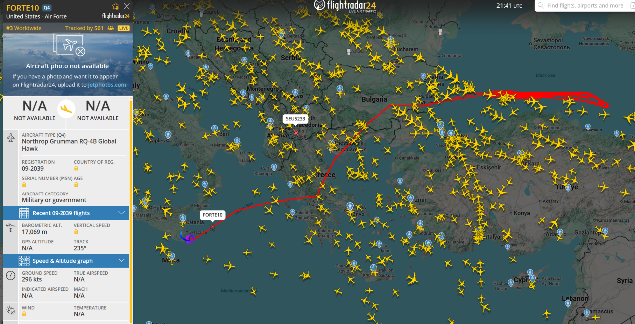 En global hawk nesten tilbake på Sigonella etter patrulje over Svartehavet. Kjekt å sjå at dei overvåker igjen. -