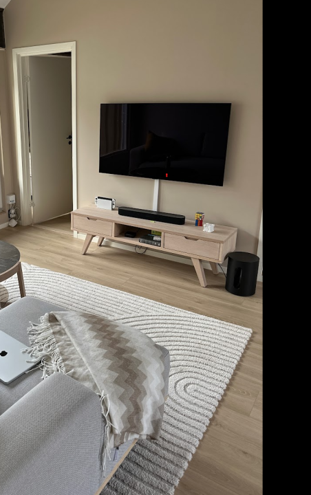 Vurderer å bytte ut min 55" TV i en 65 eller 77 tommer. Ideelt sett skulle jeg valgt 77 tommer, idet sofaen - foruten chaiseloungen - er 295 cm unna TV-en. Imidlertid tenker jeg at det vil se litt rart ut, idet TV-en da kun vil ha en klaring på ca. 4 cm på hver side til dørkarmene, og TV-en vil også bli bredere enn TV-bordet. Noen som har noen tanker? Kanskje er det bare i mitt hode at en TV som okkuperer hele veggen mellom to dører vil se rart ut. 😛