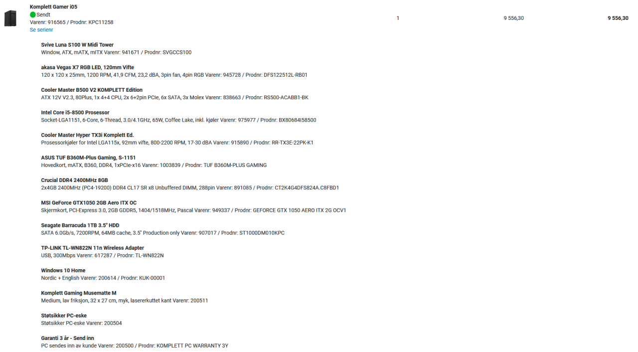 Kjøpt på komplett i 2018 til 9 500,-. Komplett Gamer i05. Svive kabinett. Helt og pent.