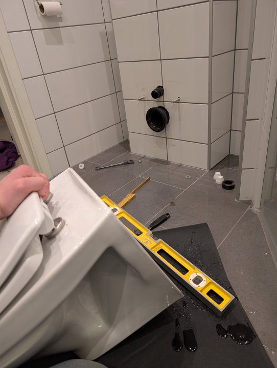 3. Oppdaget noen dråper under vegghengt toalett. Ser det drypper litt kun når det skyldes ned. Er det tetningen rundt avløpsrøret som lekker tro? Snapchat-375807935.mp4