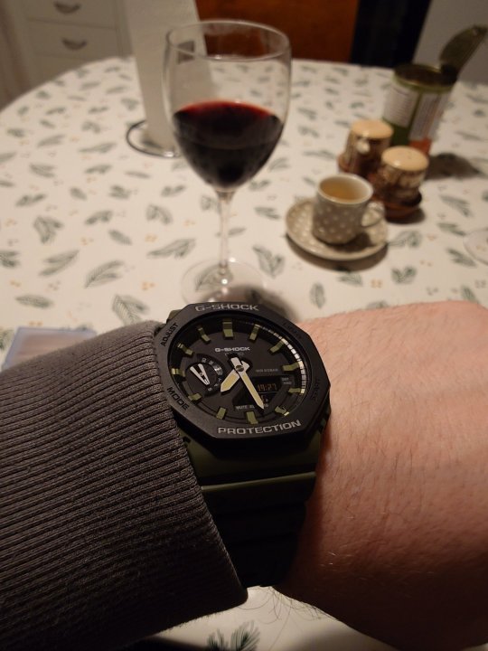 Brifer G-Shock Casio Oak I grønn og svart army kakhi. Passer perfekt med Casual hettegenser og jeans og sneakers eller Mokkasin boots om det snør... Og passer med Sigar etterpå. Tror det blir en liten Monecristo fra Cuba og en skvett rom enten fillipinsk eller fra Vestindia og en Fransk cafe au lait uten sukker og en colaboks når kaffen og rom tar slutt. -