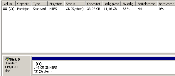 rats-frats Skrevet 19. september 2008 Forfatter Skrevet 19. september 2008 Har du ingenting som heter "Unpartitioned space" der? Jeg kan ikke se det, nei.. Jeg har aldri vært borti slikt før, så kan ikke garantere noe, så håper på innspill som kan føre meg nærmere et svar