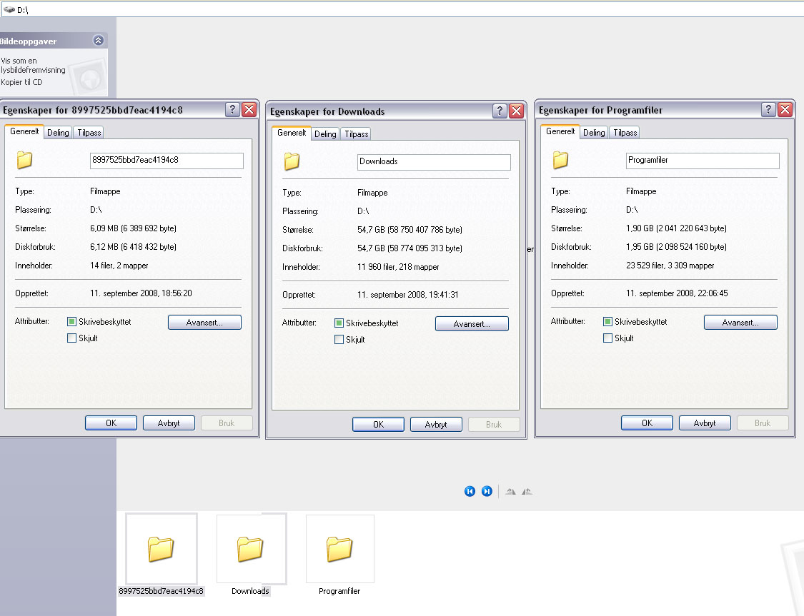 neadii Skrevet 3. oktober 2008 Forfatter Skrevet 3. oktober 2008 What? Utforsker? Uansett, det jeg gjorde var: Jeg høyreklikke på disken min (bilde i vedlegg), og valgte formater. Disken har en total størrelse av 203 GB, men etter formatering hadde jeg ca. halvparten, altså rundt 100 GB. Jeg har også sjekka mappene i D-disken. De er ikke 100 GB tilsammen, de er rundt 60. (Bilde i vedlegg)