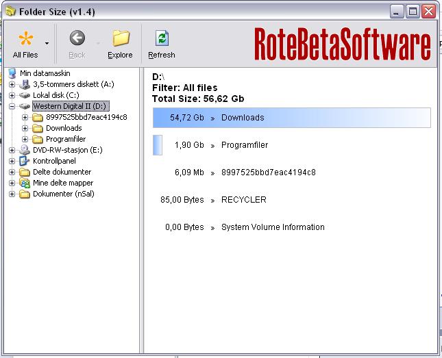 arnizzz Skrevet 3. oktober 2008 Skrevet 3. oktober 2008 Bruker Foldersize fra denne siden: http://www.rotebetasoftware.net/wp/freeware/ Så finner du nok hva som tar opp all plassen din. Hvis du høyreklikker på D: disken og trykker egenskaper vil du nok see at kapasiteten står som 203GB og at brukt plass er høyere enn hva du tror