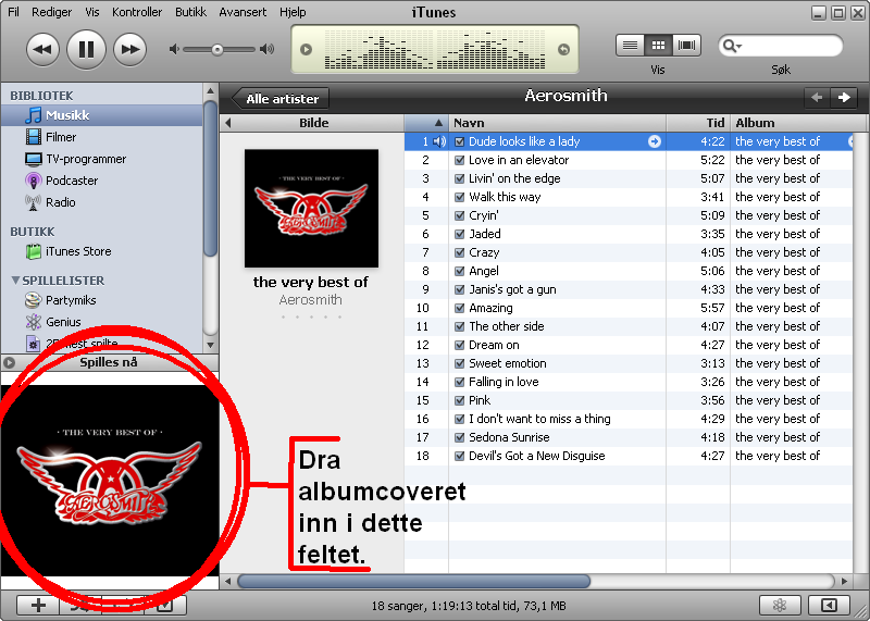 Natrium Skrevet 1. oktober 2008 Skrevet 1. oktober 2008 (endret) Hvis du skal legge inn albumcover finnes det sikkert mye enklere måter en denne. Hvis du ikke har veldig mange album så fungerer den veldig bra! Uten_navn.bmp Du drar bare bilde, fra vilken som helst internettside eller på hardisken, inn i feltet som er merket på bildet. Hvis bildet skal bli vist på iphonen så må du huske å legge bilde på sang nr. 1!!!! Håper du forsto noe av det SORRY Hvet ikke hvorfor bildet kom som neldastnigsfil, men gidder ikke endre på det. Endret 2. oktober 2008 av Natrium
