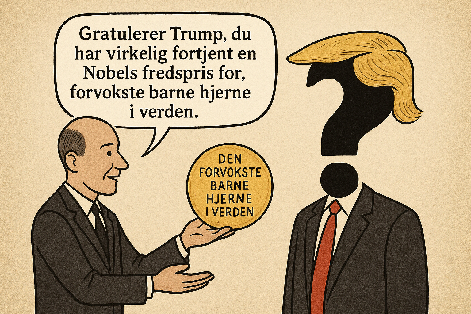 TheDarkSycamore - SCM Skrevet 5 timer siden Skrevet 5 timer siden N-4K0 skrev (1 time siden): Latterlig at Trumpeten tror han fortjener Nobels fredspris sånn som han holder på, ikke bare utenriks, men tilogmed i sitt eget land, lar ICE herje som de vil og åpenbart dr*ter i fattige, lavtlønnede og hjemløse. Rett og slett en skam. Hvis han absolutt vil ha en pris, det har han alt klart. Det er ikke den slags Nobel Fredspris. 1