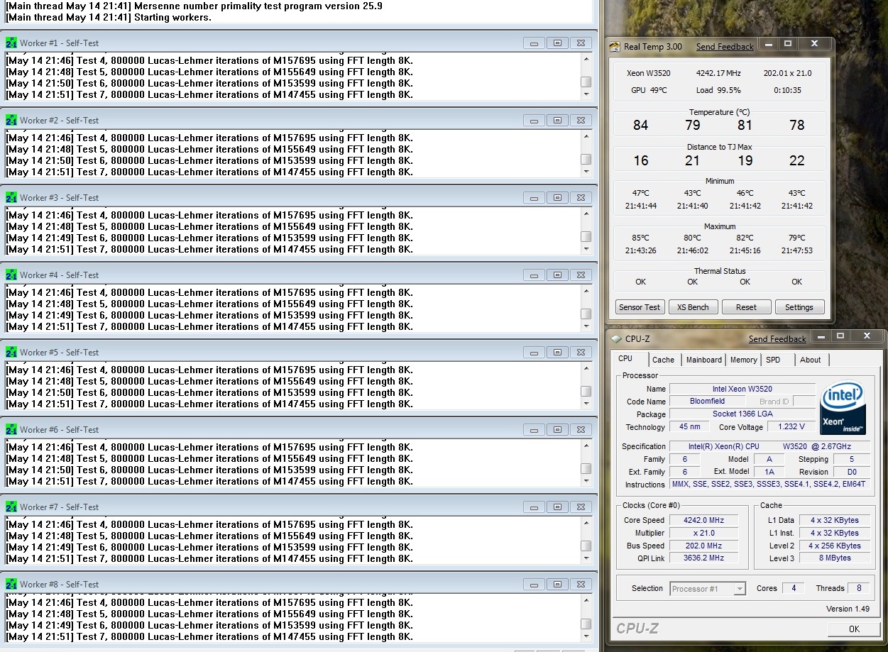 OldMan Skrevet 14. mai 2009 Skrevet 14. mai 2009 Test av DI W3520 D0. 1 batch: 3845A935, 2 batch 3848A352 GB UD5 med F7C bios, TRUE med 1 Pabst 120mm 38db, på benk, 23 grader romtemp. Maks prime med maks 85 grader cpu temp: 1 batch: 2 batch: Den 2 er snillere på temp, krever mer vcore og har dårligere uncore. (3.8 vs 4.0 ca) Tipper PCP160 sin er noe bedre enn den jeg har her, men skal få testet dem med vann etterhvert.