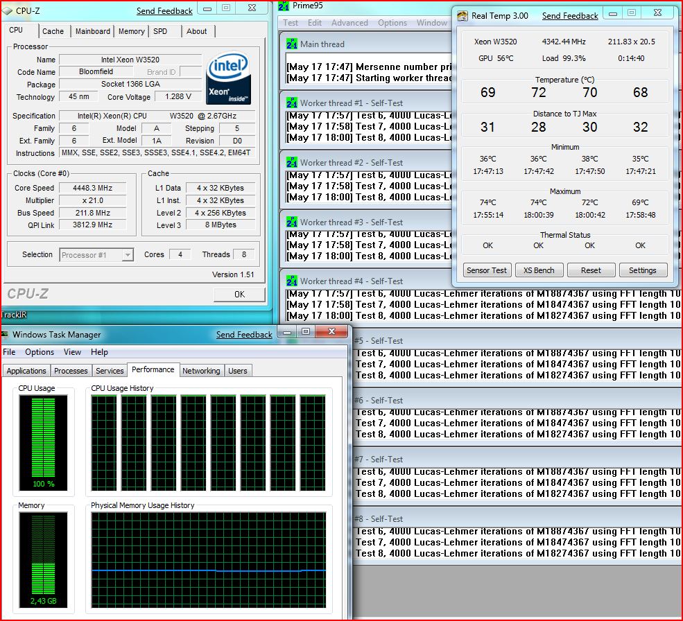 pcp160 Skrevet 18. mai 2009 Skrevet 18. mai 2009 Bare hyggelig, og takk for det Oldman og TL1000. Og ja, jeg glemte å si det, men de resultatene du postet er til forveksling likt det jeg får til. Jeg får jo også kjørt 4,51 stabilt, men det blir jo da i realiteten store deler av tiden 4,3 grunnet multipler dropp. Så i praksis blir 4,5Ghz en HT-off hastighet her i huset. Jeg er ikke helt sikker på om jeg klarer 4.0 langtids-stabilt på fullt så lav spenning, men resten oppover ser likt ut. Er jo en tidkrevende sak å finne stabil fart, i går kjørte jeg 4,45 på noe rundt 1,3Volt men fikk feil etter 56 minutter Prime. Da har jo også temperaturen vært stabil de siste 45 minuttene. Her er 12 min på 4,45Ghz og 1,29 Volt; Men det holdt altså ikke helt til mål... PS, omtrent hvor starter 21 multi-problemene hos deg Oldman? TL1000SUansett, jeg har merkelig nok ikke noe "sug" etter en D0. Løgnhals! Historien har vel vist at du er myyye hardere angrepet av denne sykdommen enn meg, og sitter med en D0 innen 2 mnd!