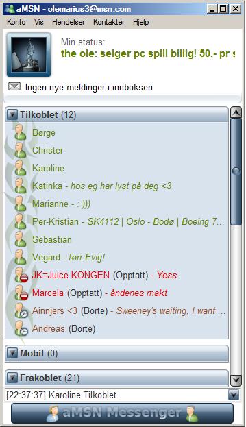ole_marius Skrevet 2. november 2008 Skrevet 2. november 2008 litt oftopic her da men jeg trør til. amsn er en klone som ligner veldig, uten reklame og en lettvekter i msn miljøet generelt hovedside chatte vindu