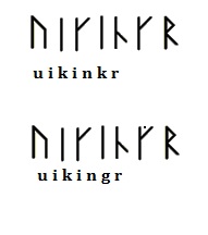 KristineS Skrevet 11. juni 2012 Skrevet 11. juni 2012 (endret) I den forbindelse, lurar eg på om det er nokon som er veldig sikre på det med runer og elder futhark. Skal blant anna tatovere "vikingrr", men det skal stå med runeskrift. Har funne to forskjellige måtar å skrive det på, og forskjellen ligg i g'en. Om ein ser her: http://en.wikipedia....i/Elder_Futhark Så ser man at det går an å bruke vanleg "n" og vanleg "g", eller det går an å bruke "*ingwaz" Kva er det som blir mest riktig? Om du skal bruke stavemåten "vikingr" som er norrøn ville jeg valgt å bruke runene fra den yngre futhark. Den eldre futhark bruktes bare på urnordisk noe som ville ført til at du ville endt opp med ei tatovering som ikke ville ha samsvar mellom bruk av språk og futhark. Blir det samme som om man skulle skrevet norsk med russiske bokstaver. Jeg legger med et bilde av slik jeg ville skrevet det med noen av de yngre runene. Har hatt runologi som fag på NTNU det siste halvåret nå + A i norrønt, så tror jeg skal ha det på stell Begge de måtene jeg på bildet er fullt mulige, men skrifttegnene i den nederste er noe yngre enn den øverste. I tillegg vil jeg bare peke på at det ikke finnes noen egen rune for "v" og de brukte "u" for den også. De hadde heller ikke opprinnelig noe eget tegn for "g", men "punkterte" runer dukket etterhvert opp, og det er dette som har ført til at k-en har blitt til en "g" i den andre innskrifta =) Endret 11. juni 2012 av KristineS 1
