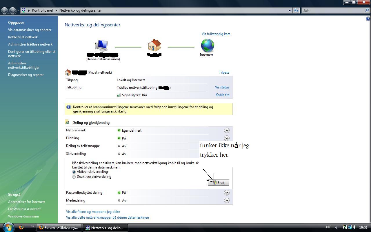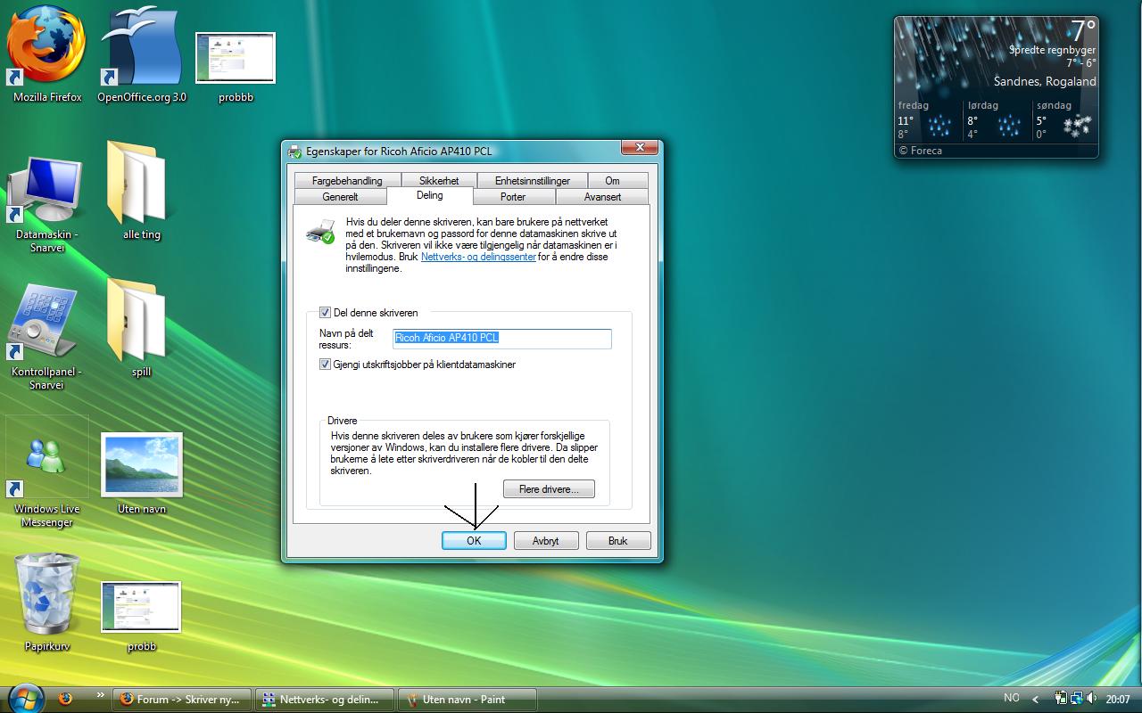 Markelure Skrevet 13. november 2008 Skrevet 13. november 2008 søsteren min har en stasjonær pc som er koblet til en skriver via usb. (windows vista kome premium) så jeg vil at jeg kan bruke min pc (vista) og at faren min kan bruke sin(xp)og kunne skrive ut via nettverket. når jeg velger del skriver, så står det fortsatt av slik at den ikke er synlig på nettverket. jeg har prøvd å trykke på instillingene på skriveren deling og det fungerer fortsatt ikke. la til noen bilder kansje lettere å forstå da