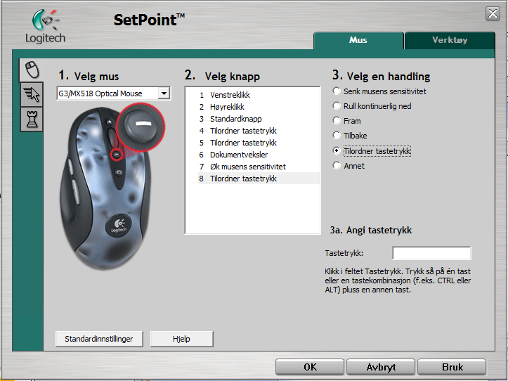 Flyndresnik Skrevet 19. november 2008 Skrevet 19. november 2008 (endret) Gode gamle Logitech MX518 kan du binde fem av knappene på... Endret 19. november 2008 av Pearwood