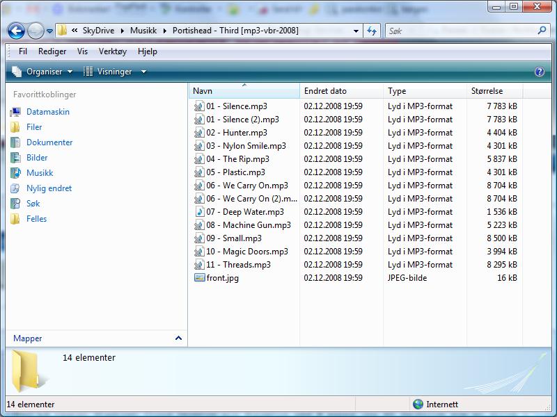 thotta Skrevet 2. desember 2008 Skrevet 2. desember 2008 Har nå testet Gladinet Cloud Desktop sin funskjon med å mappe opp MS SkyDrive som en drive i Wondows. For browsing går det forsåvidt fint, men for overføring av filer ble jeg ikke imponert. Satte i gang overføring av en mappe med ca 60 MB med mp3-er. Dette virket ikke pålitelig. Fikk flere ganger melding om at kildefilen (ja, kilde) ikke eksisterer, eller at den allerede eksisterer på destinasjonen. Så det virker som forbindelsen kan ha vært små brudd i forbindelsen med MS sin tjeneste. Når jeg i ettrtid browser den overførte katalogen, har alle filene fått et merkelig ikon - et kryss på dem. Er det standard Windows? Jeg har faktisk ikke tatt meg bryet med å sjekke hvorvidt filene faktisk er overført komplett. Jeg kommer uansett ikke til å benytte meg av dette, da jeg ikke stoler på det. Kanskje en gang i fremtiden når det er ute av beta. (Har lagt ved bilde av hvordan filene så ut etter overføring, for de som er interessert) Så da må jeg gjerne sjekke dropbox, ja.
