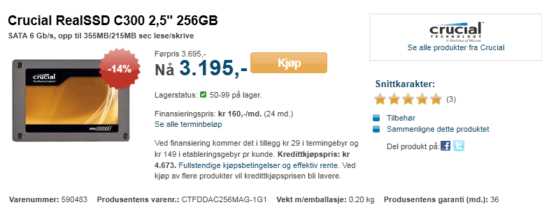 Anv Skrevet 26. april 2011 Skrevet 26. april 2011 @BAT Det var det tilbudet jeg refererte til, det har vært en stund og er rimelig bra. Husker ikke hva jeg betalte for mine men det vær nok rundt 5-5.500,- per stk for 1 år siden.