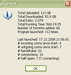 Pasient Skrevet 28. desember 2008 Skrevet 28. desember 2008 Ned: 200 GB Opp: 2106 GB Vista ble vel instalert for 3 måneder siden eller noe. Utorrent har kjørt i 1018 timer
