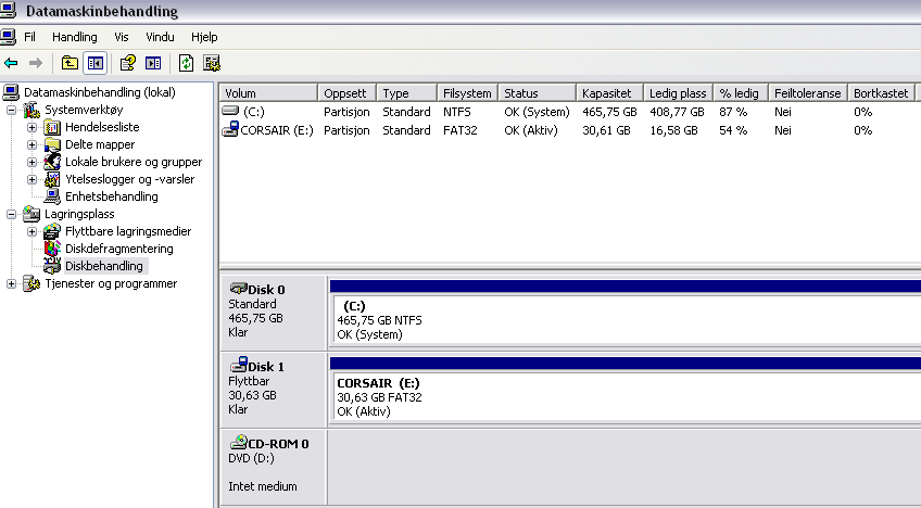 Bludd Skrevet 15. januar 2009 Skrevet 15. januar 2009 Start meny - kjør - compmgmt.msc - ok Finn diskbehandling eller hva det nå heter i norsk Windows.