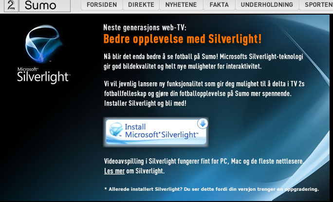 Beritaron Skrevet 12. april 2009 Skrevet 12. april 2009 (endret) Det er ikke linux sin feil, men det er linux sitt problem. En bruker som bare vil at ting skal funke, bryr seg ikke om hvem sin feil det er, men om ting ikke virker er det et problem, og brukeren blir misfornøyd. Derfor er det viktig å informere hva som er årsaken til problemet, det er dessverre bare antall brukere som kan rette på dette. Det er også interessant at ingen kalte OSX for lite brukervennlig da Mac'ere klagde over at TV2 Web-TV ikke fungerte for Mac. Da var alt selvsagt TV2 sin feil (noe det jo selvsagt også er). Er en stund siden jeg har sjekket statusen på TV2 prøvde igjen nå: Først kom jeg til en side som fortalte meg at jeg måtte ha Silverlight, som var støttet i PC og Mac, altså ikke operativsystemene Windows og OS X, men PC og Mac: Når jeg klikte på linken fikk jeg beskjed om at den kanskje ikke var støttet på PC (som jeg tidligere adde fått beskjed om at skulle være støttet) alikevel: Etter det ble jeg sendt til Moonlight og lastet ned Moonlight 1.0.1. Det så ikke ut til å funke, og endte bare opp i samme loopen. Ble nå også installert noen codecs fra MS som heller ikke så ut til å hjelpe særlig. Etter jeg tok en titt på: http://mono-project.com/MoonlightSupportedPlatforms så det ut til at Ubuntu 8.10 som jeg bruker ikke var støttet, noe jeg burde fått beskjed om når jeg prøvde å installere, det er heller ingenting som indikerer at Moonlight ikke skal fungere her. Er det rart nye Linuxbrukere blir frustrert og forvirret? Hvem er det egentlig som har skylden her, TV2 for valg av tjeneste, MS for å ikke selv gjøre tjenesten kompatibel i Linux (eller kanskje gjøre den vanskelig å implementere) eller utviklere av distroer ... Silverlight er jo åpen kildekode, og da burde det ikke være noe problem, eller? Endret 12. april 2009 av tamarin