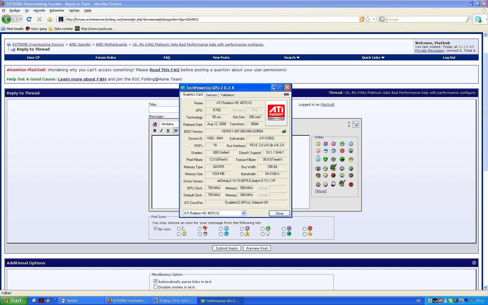 Renegade600 Skrevet 26. januar 2009 Skrevet 26. januar 2009 Hei alle data folks. Hvorfor får jeg 1 fps når jeg kjører 3dmark06 proffesional CPU test? Har noen av dere opplevd dette? må jo være nokka feil her...... Håper at dette forklarer laggen jeg har i nesten alle spill.... Er det minnet? eller CPU? eller GPU? Jeg mener... kom igjen da, jeg har jo "nice" speccs. My speccs: AMD Athlon 64 x4 phenom 2.6 9950 BE. Sapphire radeon 4870x2 2GB. Corsair Dominator TWIN2X8500C5DF "Part Number(CM2X1024-8500C5D)" Håper det hjelper, og når jeg sjekker cpu-z så viser den "Max Bandwith: PC2-6400(400 MHZ). Så hadde jeg noe med GameXtreme 850W Strømforsyning.