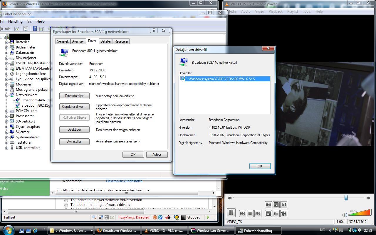 Mountain Skrevet 1. februar 2009 Forfatter Skrevet 1. februar 2009 (endret) This may help a bit. Nettverkskortet er plutselig oppe og går, men det slokner sikkert snart igjen. Lastet opp et bilde hvis det kan være til hjelp. (24 sesong 7 i bakgrunnen, btw ) Jeg har akkurat oppdatert driveren igjennom fil-endring i system32 ved å bytte ut den gamle driveren med en ny versjon. Å oppdatere driveren igjennom et program eller enhetsbehandling gikk ikke. Alle sa at driveren jeg hadde var den nyeste, noe som var feil. Jeg skal restarte pc'n nå, i skrivende stund. Så vi får se hvordan det går. Endret 1. februar 2009 av Narrie