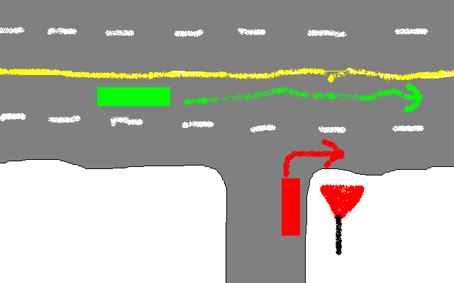 eab Skrevet 24. februar 2009 Skrevet 24. februar 2009 (endret) Du kan se på min tegning at rød bil har passert krysset, og har dermed kommet seg ut av krysset uten å ha hindret noen. Hvordan kan da grønn bil få skyld i det når trafikkreglene sier at man skal holde tilstrekkelig avstand til forankjørende? Hvis du skal bruke den tegningen din for å få fram et poeng så bør den iallefall ha to kjørefelt i samme retning, hvorav grønn bil ligger venstre kjørefelt og rød bil svinger inn i høyre... Endret 24. februar 2009 av eab