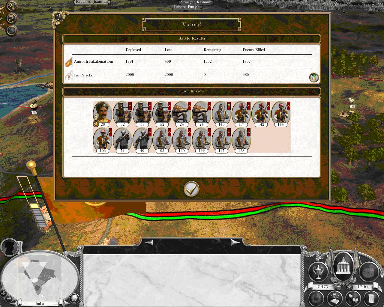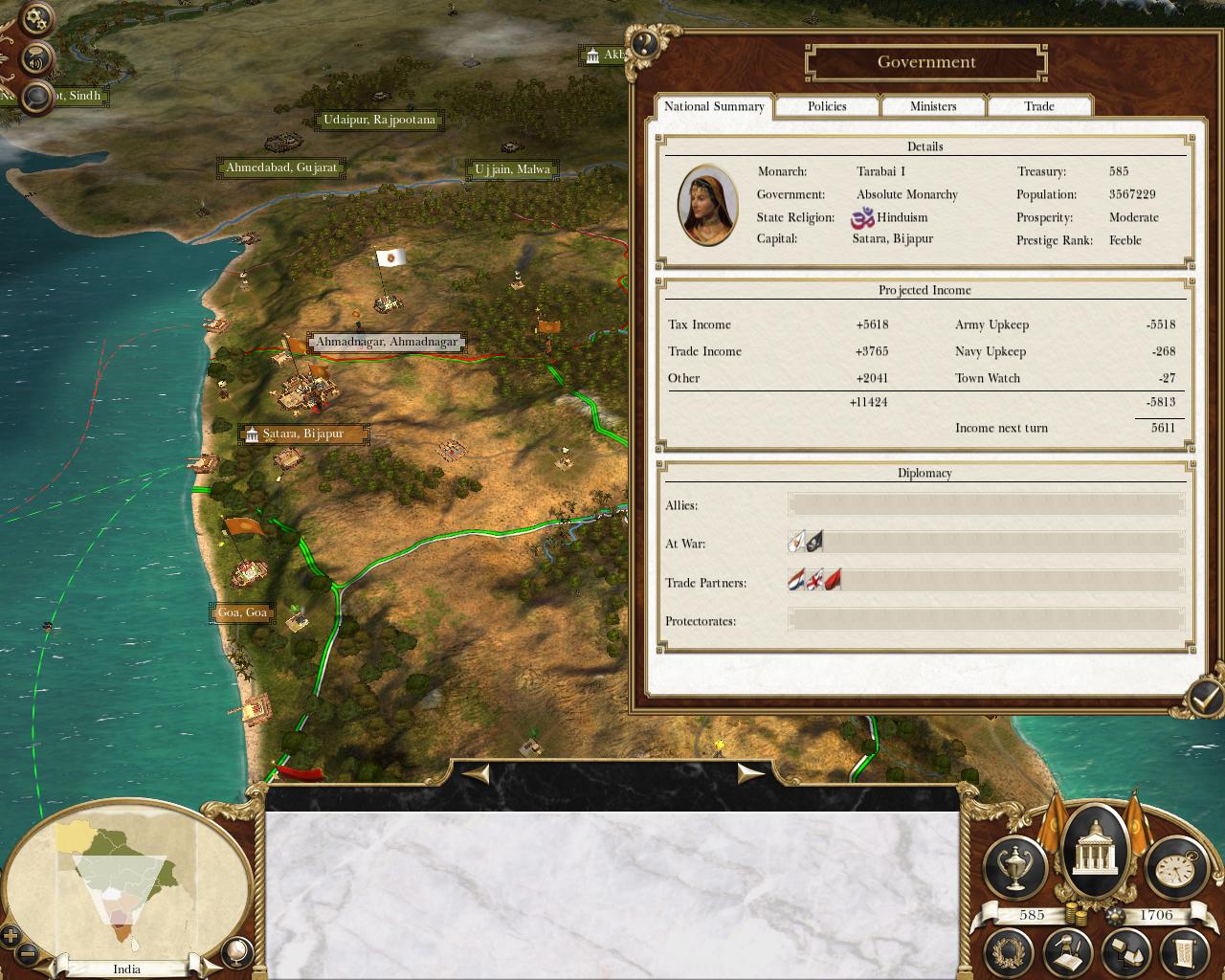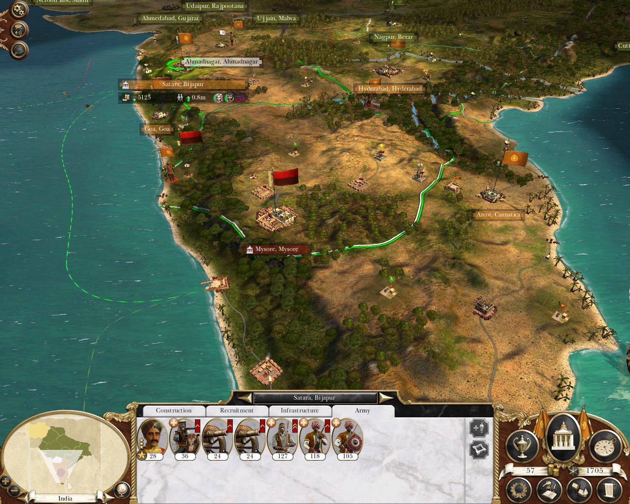 qollies Skrevet 20. april 2009 Skrevet 20. april 2009 (endret) Har allerede skrevet litt historie, vet ikke hvor mye jeg skal skrive så derfor legger jeg den ut her så får dere gi en vurdering. Word dokumentet er for stort så bare legger ut hele teksten her og redigerer den bort senere. MARATHA CONFEDERACY Året er 1705, og etter at Sindre har spilt har vi klart å erobre byene hyderabad og goa. Vi er i krig med Portugal, men har klart å gjennopprette freden med mughal empire. Hovudprioriet nå fremover blir å drive ut Portugal av India slik at vi kan konsentrere oss om våre gamle fiender Mughal empire. Sommeren 1706 planlegger vi angrep på Portugal i deres eneste by i landet. Vi forbereder styrker i både Bijapur og Hyderabad og vil trolig innen 1707 ha erobret den Portugisiske byen. Økonomien holder seg stabil og ligger nå på rundt 5000 slik at vi vil ha nok penger til å holde krigføringen. Senere på vinteren 1707 Drar den samlende hæren for og slå den Portugisiske. Vi måler nesten like mange menn og det kan tyde på at det vil bli en blodig kamp. Blod,svette og tårer renner ned gjennom soldatenes kinn, solen steker og uniformene gjør det ikke noe bedre. Det eneste General kan si er at dei andre har det verre som jo er et fornuftig trekk. Dei portugiske troppene innser at dei holder på å tape, dei samler hæren sin i et siste håp om at vi skal miste moralen preget av deres antall av menn. Men etter flanking og skyting måtte dei til slutt gi tapt. Et par hus var igjen, men ble lett stormet og tatt av våre overlegne tropper. Kanonene våre klarte å få deres tropper til å miste moralen og derfor holdt det med å bare storme et hus. Statistikken så slik ut: Etter den deilige seieren, ville jeg ikke ha noen flere problemer med mysore så jeg inngikk en allianse og gav dei en liten gave slik at vi slapp å få deres store hærer innover vårt kontinent. Nå gjenstår det bare og starte opp igjen krigen med Mughal empire så får vi snart India under dets rette eier. Endret 20. april 2009 av Fleskeklumpen
