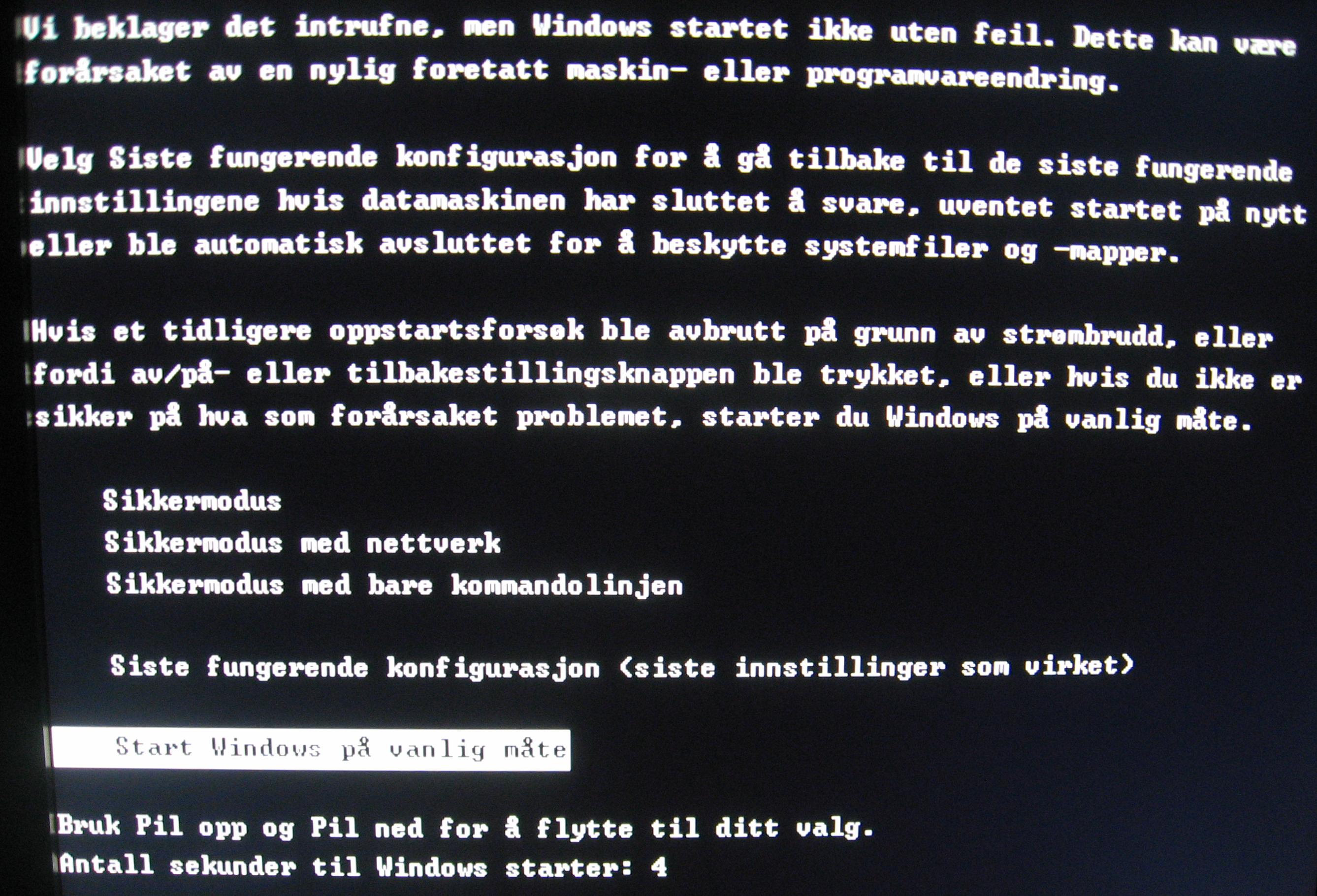 asdfghjk Skrevet 9. mars 2009 Skrevet 9. mars 2009 (endret) Jeg har sjekket forumet og er ganske sikker på at ingen har akkurat dette problemet: Jeg er ganske sikker på at jeg har et virus eller en annen form for malware på pc-en. Jeg fikk det når jeg ikke hadde et antivirus program (ikke spør hvorfor) og nå virker ikke pc-en. Når jeg starter pc-en virker det som at alt er greit, den kommer seg forbi den første loading skjermen (med "F2 = Setup" og "F12 = Boot menu" øverst) men deretter kommer første tegn på at noe er galt. Det kommer opp en skjerm der det står: "vi beklager det inntrufne, men Windsows startet ikke uten feil" og det er noen alternativer for å løse problemet: Sikkerhetsmodus Sikkerhetsmodus med nettverk Sikkerhetsmodus med bare kommandolinje Siste fungerende konfigurasjon <siste innstilling som virket> Start Windows på vanlig måte Jeg har prøvd alle men alle stopper etter hvert med en svart skjerm med pilen i midten (som jeg forsovet ikke kan bevege) Jeg har også prøvd "f2 set up" og sjekket systemet derfra, og "f12 boot menu"; begge uten hell. Det jeg lurer på er: Har denne typen problem/feil/virus (som ikke gjør deg i stand til å starte PC-en slik at man kan fikse problemet der med for eksempel et antivirusprogram, men lar deg komme til boot menyen)et navn? Hvis man får denne typen feil, hva er da alternativene man har for å rette opp problemet?(dette varierer selvsagt, og jeg regner med at det beste vil være å starte enten i safe mode eller "Siste fungerende konfigurasjon <siste innstilling som virket>", men hvis dette ikke går? Er det mulig å koble driveren/pc-en til en annen Pc? I så fall hvilke problemer kan/kan ikke dette fikse? Kan jeg risikere å smitte den andre pc-en? Hvis ja; hvordan forhindrer jeg da dette? Kan en CD fikse problemet? Hvor får jeg i så fall tak i en hvis det ikke fulgte med Pc-en? Er jeg nødt til å installere windows på nytt? Hvordan vet jeg om jeg må installere windows på nytt? Hvordan installerer jeg windows på nytt? Hvor mye data vil da gå tapt? Jeg håpet at det ikke ble for mye, men jeg tror det kan oppklare mye for mange. Jeg er også glad for svar på bare enkelte punkter. Det kan hende jeg bruker de forskjellige uttrykkene feil, hvis jeg gjør dette vær så snill å korrekter meg (jeg mener det er ganske viktig angående disse tingene) Edit: La til noen bilder De er sortert etter når de kommer opp på skjermen, i tillegg til disse bildene får jeg opp "F2 = Setup" vinduet, "F12 = Boot menu (som dere kan se på bilde én) og vinduene til de forskjellige alternativene til feilmelding vinduet (det er omtrent ingen forskjell fra disse alternativene og vanlig oppstart) Booting Feilmelding Loading Crash Litt informasjon om PC-en: Microsoft Windows XP Home edition Dell intel inside pentium 4 Dimension 5150C Da crashen skjedde kjørte jeg et exe. program, skjermen ble blå i ett sekund med noe hvit tekst som jeg ikke fikk med meg fordi jeg prøvde å skru av PC-en så fort jeg kunne. Deretter var PC-en slik jeg har beskrevet. Endret 9. mars 2009 av asdfghjk