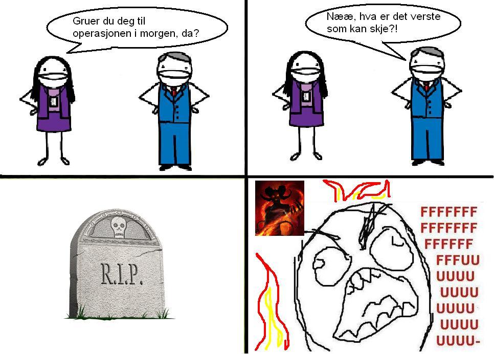 Wabby Skrevet 9. november 2009 Skrevet 9. november 2009 Mekka nå selv, inspirert fra operasjonen min i morgen... Good luck går nok bra. Selv om jeg mener at å bli grønnsak er hakket værre enn å daue.