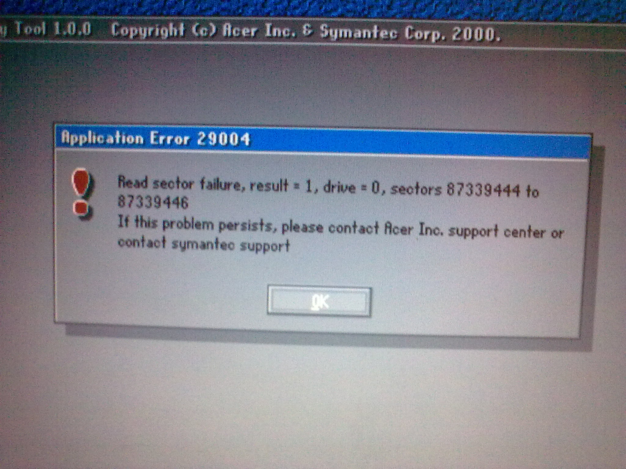 meja Skrevet 2. mai 2009 Skrevet 2. mai 2009 (endret) OK, dette er saken: Windows XP Home Edition Jeg eier en Aser Asprie 3000 (Det står 3003 LMI på kviteringen) og en ikke så vakker dag startet jeg pc og etter lang tid med svart skjerm, kommer dette: Widows kan ikke starte fordi denne filen mangler eller er skadet: \WINDOWS\SYSEM32\c_1252.nls Jeg tenker dritt, da kjører jeg recovery og taper dataene på C: disken (Der er det ingenting å ta vare på) Men når jeg prøver å starte Recovery på Hard driveen så funker den ikke.. Den vil rett å slett ikke starte. Jeg tenker; OK da kjører jeg recovery på system recovery cdene mine, det går smertefritt og jeg får opp menyene om reinstallering o.s.v bytter fra disk 1 til disk 2 av 4 så flytter ingen ting seg og så kommer det: Application Error 29004: (SE BILDET) så kommer det nede i venstre hjørnet: "Details output to file: GHOSTERR.TXT" Hva tror dere er problemet? Endret 2. mai 2009 av meja
