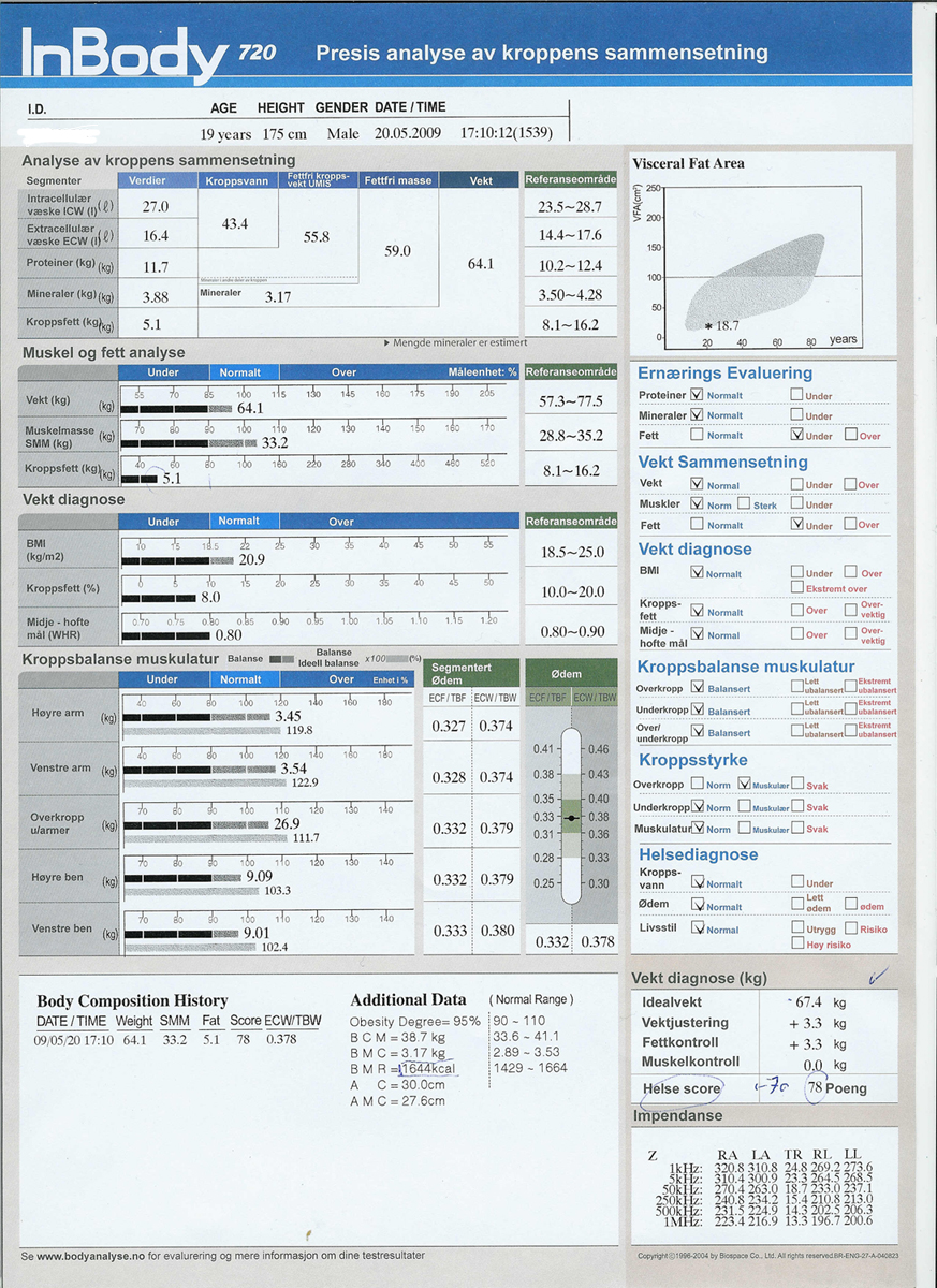 Kenneth199 Skrevet 10. mai 2009 Skrevet 10. mai 2009 (endret) Siden det er en del som logger, så henger jeg meg på. Har nylig begynt å trene igjen etter en skade i ankelen. Holder på å sette opp et treningsprogram som skal strekke seg over 30 uker. Det vil bli en 3 splitt hvor hver muskelgruppe får kjørt seg 2 ganger i uka. 4-6 treningsdager i uka alt etter formen. Litt info om meg ved oppstart: Kjønn: Mann Alder: 19 år Vekt: 65 kg Høyde: 174 cm Nå den 23/08/10 vekt: 75kg Mål med treningen er å få en bedre fysikk, samt øke i volum og styrke. delmål 1 Knebøy 60kg x 10 19.06.09 delmål 2 Benk 55kg x 10 23.06.09 delmål 3 Pull-ups x 12 slutten av august 09 delmål 4 35cm rundt biceps. 35 rundt venstre biceps stram. 22.08.10 delmål 5 Markløft 80kg x 6 slutten av august 09 delmål 6 Knebøy 100kg x 1 uvisst når delmål 7 Benkpress 75kg begynnelsen av september 09 delmål 8 Markløft 120kg uvisst når delmål 9 Pull-ups +30kg x 5 delmål 10 120cm rundt rygg/bryst pumpet opp. Finale mål 1 100kg i benk 2010 Finale mål 2 150kg i knebøy Finale mål 3 170kg i markløft Finale mål 4 vekt 70-80kg med fettfri masse. Skal skrive ned trenings programmet så snart jeg har det. Diverse mål av kroppen + inbody analyse: Nå er inbody analysen tatt 20/05-09 Høyre arm: avslappet 24, stram 28 Venstre arm: avslappet 25, stram 27,5 Underarm venstre stram: 25,5 Underarm høyre stram: 25,5 Brystet avslappet 83, stram 95 Midje 76 Rumpe 12 Lår 52 Legger 36 Målinger 02/07/09: Høyre arm: avslappet 27, stram 31 Venstre arm: avslappet 27, stram 31,5 Underarm venstre stram: 28 Underarm høyre stram: 28 Brystet avslappet 94, stram 102 Midje 76 Rumpe 89 Lår 54 Legger 36 Målinger 21/8/10 Høyre arm avslappet: 30, stram 34 Venstre arm: avslappet 31, stram 35 Underarm venstre stram: 31 Underarm høyre stram: 31 brystet avslappet 100, stram 108 Midje 81 rumpe 93 Lår 60 Legger 37 Kosthold: Spiser 2-4 egg til dagen 250-400gr kjøtt 100-150gr havregryn 0.5-1l melk 5-6 brødskiver med ost og skinke. 100gr ris, poteter eller pasta. det som er nevnt over spiser jeg mer eller mindre hver dag + mye mer! Progresjons bilder: Før treningen startet. Nye bilder kommer etter sommeren. Maksløft i de 3 store: 65kg benkpress 80kg knebøy 100kg markløft 245kg total 20/1-10 82,5kg benkpress 90kg knebøy 120kg markløft 292,5kg total 22/8-10 110kg benkpress med sprett, 100kg uten. 110kg knebøy 140kg markløft 350kg total Bildene under er tatt før treningen startet. Endret 29. august 2010 av Kenneth199