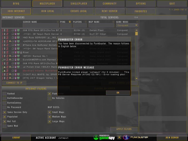 JayCamino Skrevet 2. juni 2009 Skrevet 2. juni 2009 Jeg kjøpte meg Battlefield 2: Complete Collection i dag. Har lagt inn alt, og patcha med siste patch. Og noen servere kommer jeg ikke inn på pga nettverk, og når jeg endelig kommer inn, så sparker Punkbuster meg ut pga en rar grunn. Laster opp et screenshot. Er det nettverksproblemer, eller er Punkbuster rett og slett dust? bf2.bmp